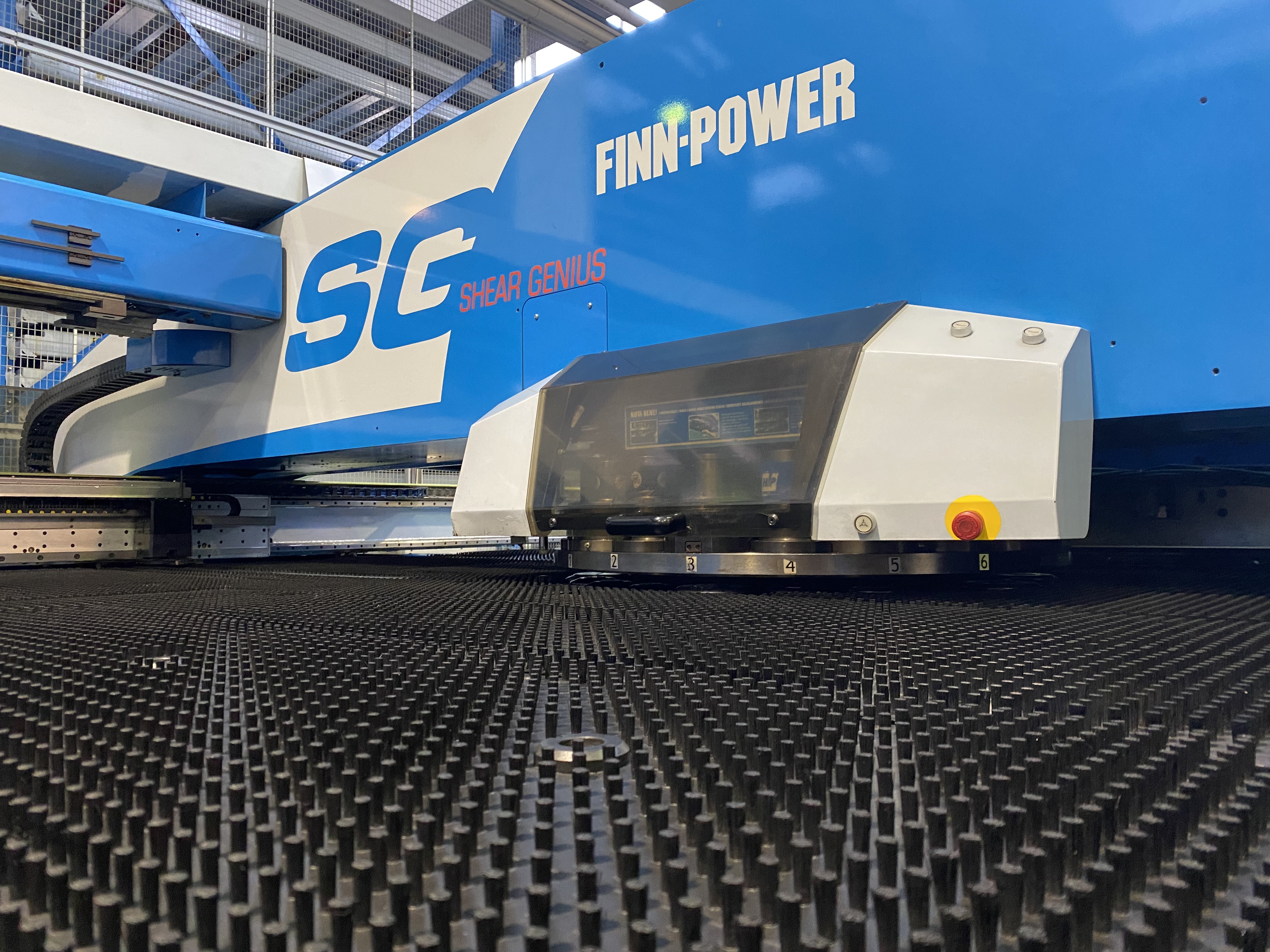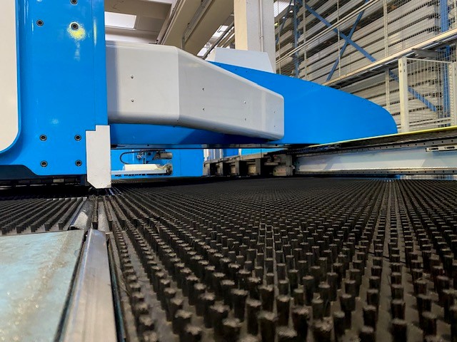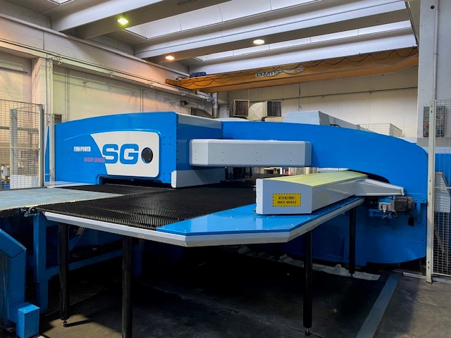Questo tipo di impianto ci permette di associare alla classica punzonatura , un sistema di cesoiatura integrato , molto efficace per migliorare il metodo comune di separazione dei pezzi di una punzonatrice convenzionale. La macchina è